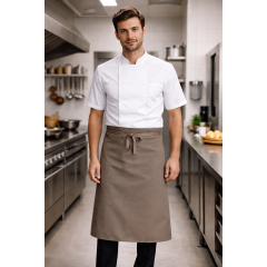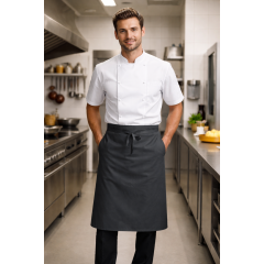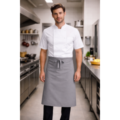 kuchárska zástera alebo tiež casnicka zastera, vhodná aj pro pekárov, cukrárov, barmanov, dĺžka do pásu rozmery 70cmx60cm, 37 farieb, 100% Polyester 200g / m2, prať do 65st.C, farba šedá Viac o produkte