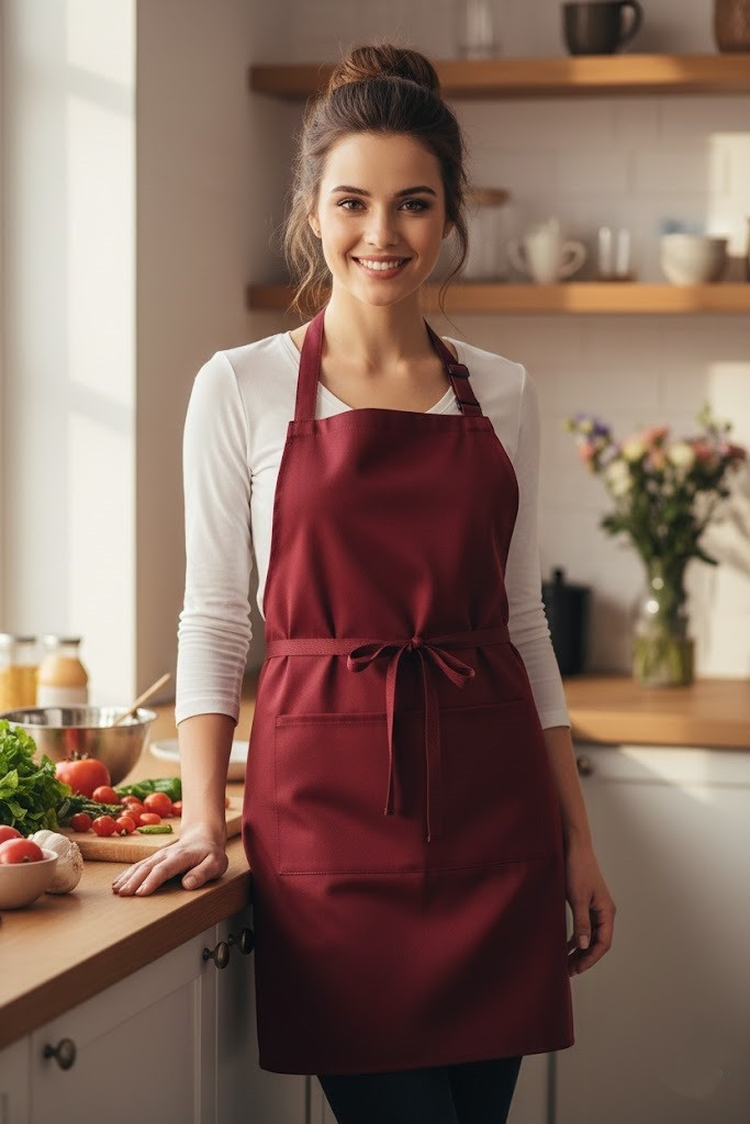odolná farebná zástera náprsníkové s vreckom pre kuchárov, čašníkov, someliér, pekárov, cukrárov, obchody, šírka 70cm x dĺžka 90cm, 100% Polyester, 195g / m2, prať do 65st.C, viazanie - rovnaký materiál ako zástera, farba vínovo červená, Viac o produkte