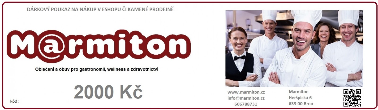 darčekový poukaz v hodnote 80€ na pracovné oblečenie a obuv pre gastronómiu, wellness a zdravotníctva do kamennej predajne a eshopu firmy Marmiton Viac o produkte