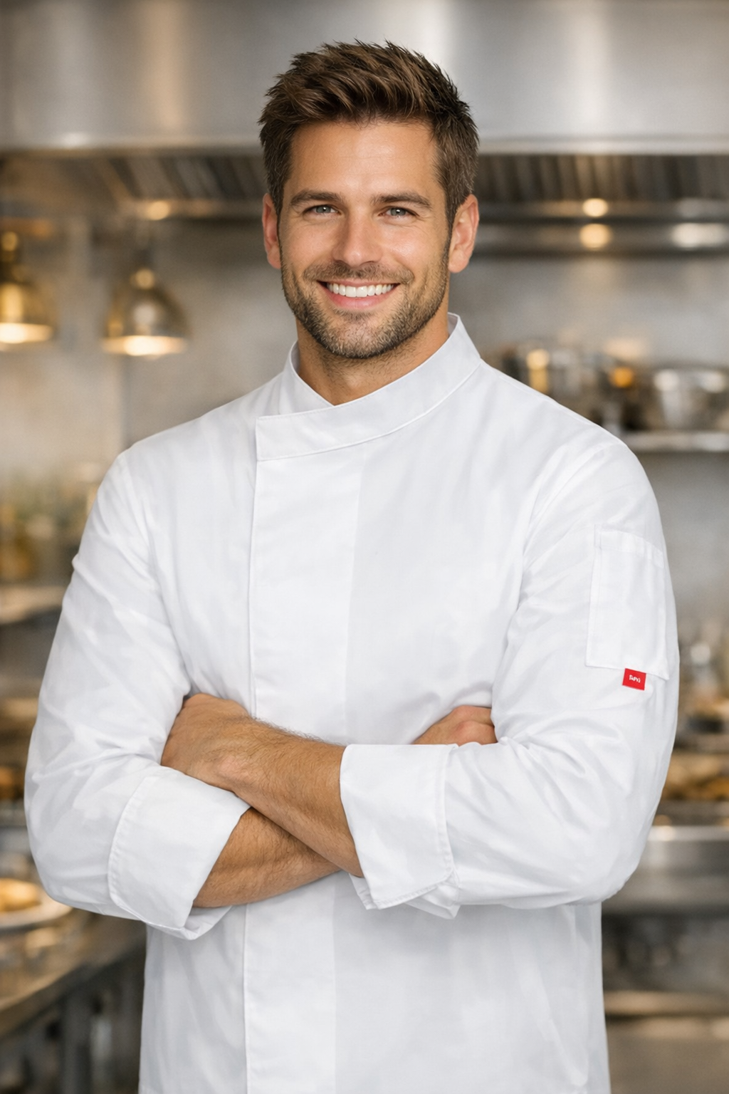 Toma 100 GRAMS kuchársky rondon dlhý rukáv biely pánsky dámsky